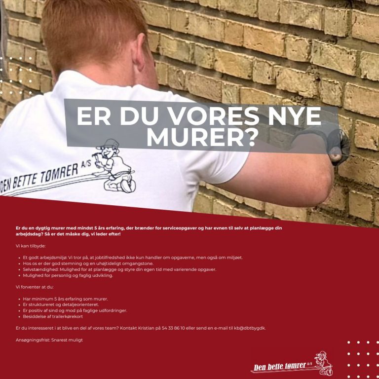 Vil du være en del af en god og social arbejdsplads, hvor vi alle er topprofessionelle og arbejder som et team? Så er Den Bette Tømrer din nye arbejdsplads.